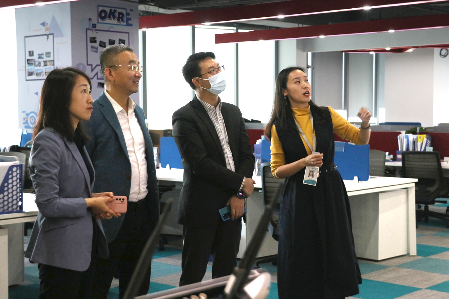 12月3日,廣州市海珠區(qū)科技工業(yè)商務(wù)和信息化局黨組成員、總工程師張文鋒一行到訪云蝶科技廣州總部,調(diào)研科技創(chuàng)新相關(guān)工作,云蝶科技高級副總裁裴永樂、副總裁劉麗麗陪同參觀。