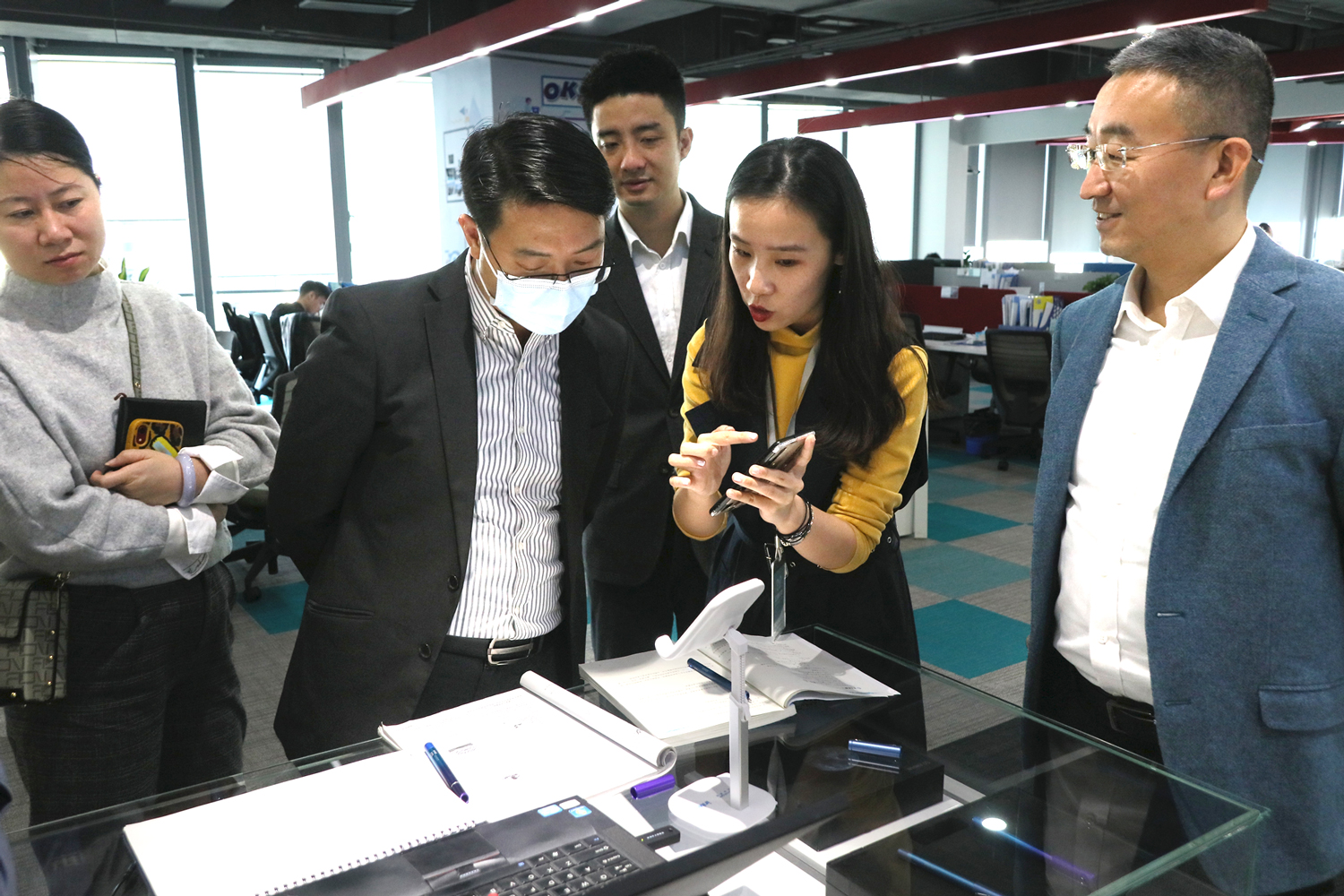 在走訪參觀的過程中,領(lǐng)導(dǎo)們聽取了公司發(fā)展歷程以及產(chǎn)品相關(guān)介紹,仔細(xì)詢問云蝶紙筆課堂在數(shù)據(jù)采集、展示、分析、應(yīng)用等方面的具體情況,稱贊云蝶與市場上近似的產(chǎn)品相比,教育場景更貼合,教學(xué)用途更廣泛,教學(xué)手段更智能。在云蝶校園電視臺展區(qū),領(lǐng)導(dǎo)們紛紛拿起手機(jī)掃描直播二維碼,體驗(yàn)互動直播的便捷操作。