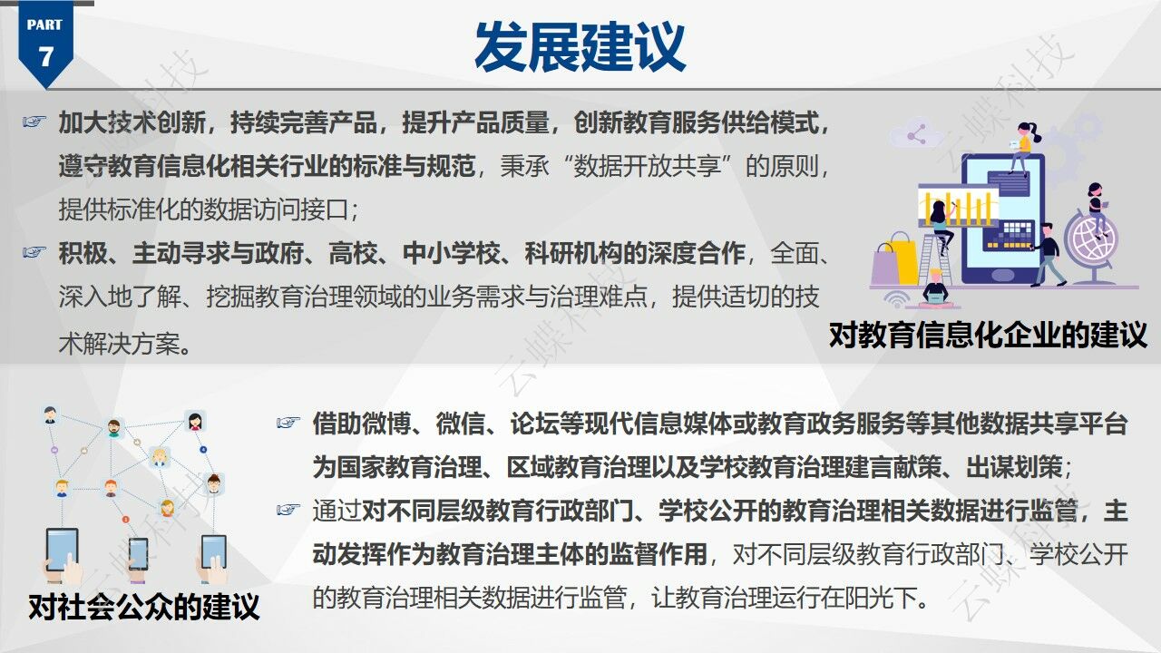 總結(jié)報(bào)告的整體內(nèi)容,《中國(guó)基礎(chǔ)教育大數(shù)據(jù)發(fā)展藍(lán)皮書》歸納出了十大結(jié)論、四大趨勢(shì)、五大挑戰(zhàn),并向各級(jí)教育管理者、教育信息化企業(yè)和社會(huì)公眾提出了相應(yīng)的建議。