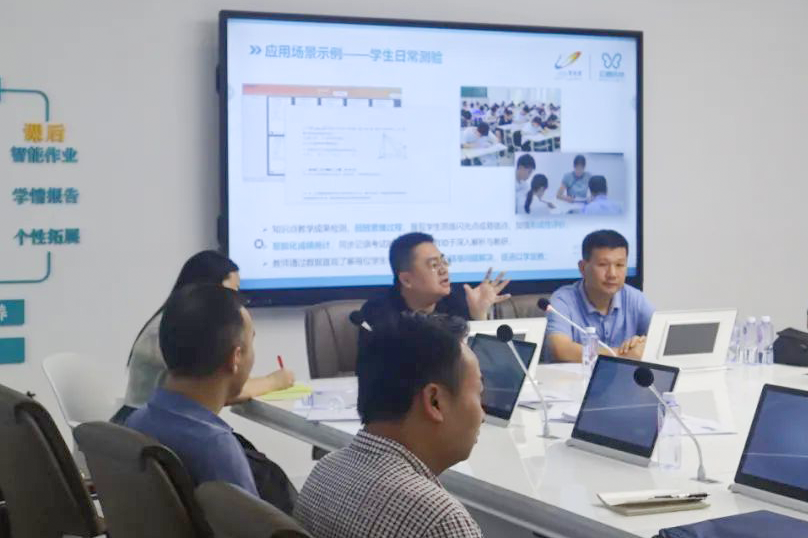 在聽取相關(guān)介紹后,柳城縣教育代表團(tuán)與柳州高級(jí)中學(xué)、龍城中學(xué)的老師,以及云蝶科技同事,共同就大數(shù)據(jù)精準(zhǔn)教研落地經(jīng)驗(yàn)等內(nèi)容進(jìn)行深入探討與交流。
