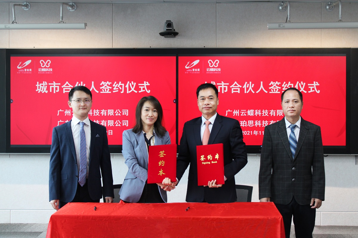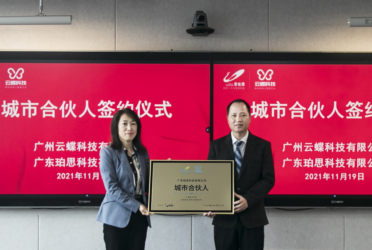11月19日,在廣州云蝶科技總部舉行的2022云蝶科技城市合伙人簽約儀式上,廣東珀思科技有限公司成為云蝶科技首家城市合伙人。