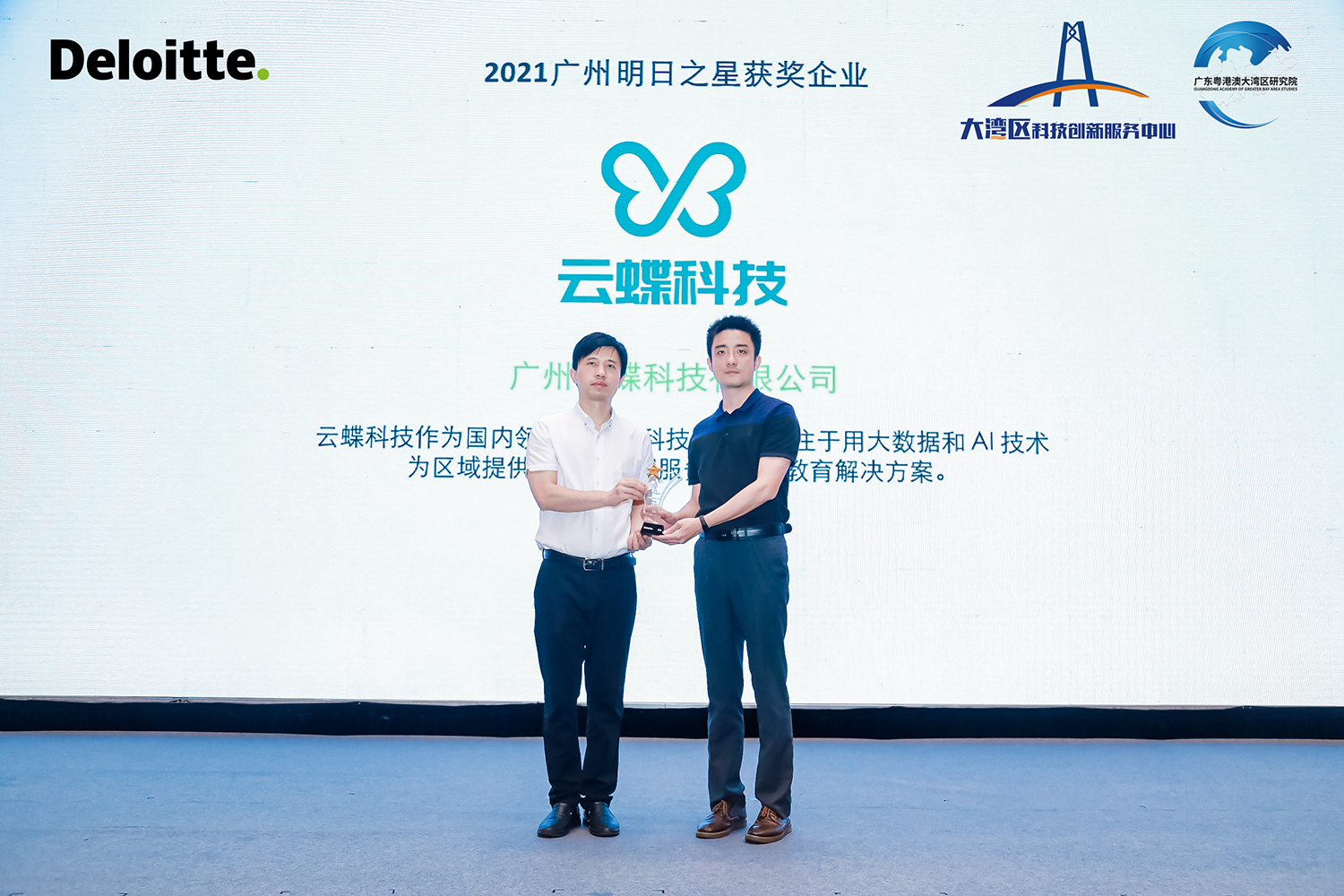 7月20日,由廣州市科學(xué)技術(shù)局、廣州市南沙區(qū)科學(xué)技術(shù)局指導(dǎo),大灣區(qū)科技創(chuàng)新服務(wù)中心、德勤中國(guó)共同主辦的“2021德勤廣州高科技高成長(zhǎng)20強(qiáng)及明日之星”頒獎(jiǎng)典禮在廣州盛大舉行。廣州云蝶科技有限公司榮登2021廣州明日之星榜單。