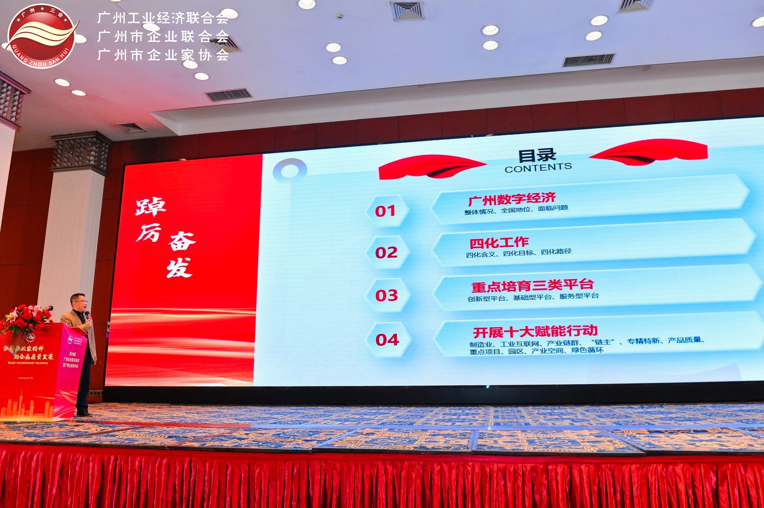 2月16日下午,廣州市企業(yè)聯(lián)合會(huì)、廣州工業(yè)經(jīng)濟(jì)聯(lián)合會(huì)、廣州市企業(yè)家協(xié)會(huì)、廣州市中小企業(yè)服務(wù)中心主辦的第28屆廣州企業(yè)家活動(dòng)日暨廣州企業(yè)家年會(huì)在廣州隆重舉行。活動(dòng)以“弘揚(yáng)企業(yè)家精神 助企高質(zhì)量發(fā)展”為主題,相關(guān)政府部門、兄弟企聯(lián)、行業(yè)協(xié)會(huì)、商協(xié)會(huì)等領(lǐng)導(dǎo),廣州“三會(huì)”執(zhí)行會(huì)長(zhǎng)、副會(huì)長(zhǎng)、理事和會(huì)員,以及新聞媒體共400多人到場(chǎng)參與。云蝶科技副總裁趙清代表云蝶出席活動(dòng)。