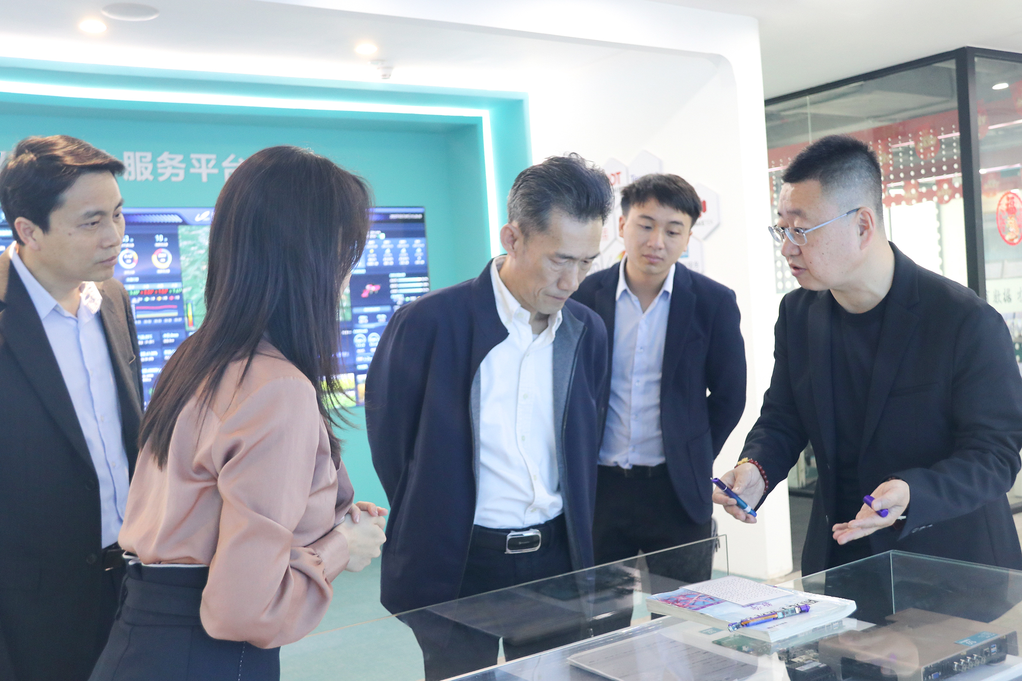 校領導一行通過參觀展廳,詳細了解云蝶科技目前運營情況、發(fā)展目標和在教育、鄉(xiāng)村、建工等產(chǎn)業(yè)數(shù)字化方面所開展的實踐與應用,對校友在相關領域所取得的成績表示贊賞。
