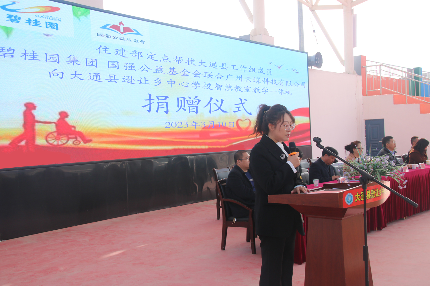 大通縣教育局副局長趙生琴在活動上發(fā)表了致辭,對近年來遜讓鄉(xiāng)中心學校在優(yōu)化辦學條件、提高教學隊伍素質(zhì)、提升教學質(zhì)量上的佳績予以了肯定,對住建部、碧桂園集團、國強公益基金會的幫扶表示感謝。