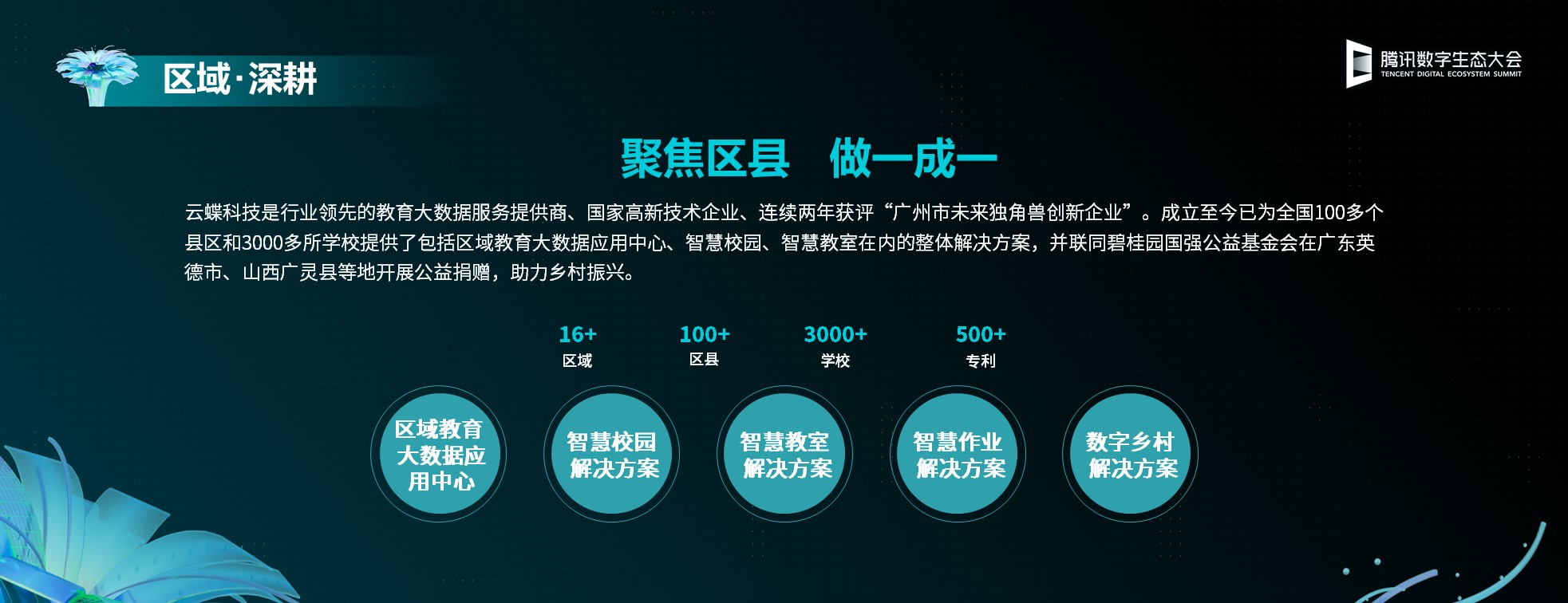云蝶科技作為行業(yè)領(lǐng)先的教育大數(shù)據(jù)服務(wù)提供商,國家高新技術(shù)企業(yè),連續(xù)兩年獲評“廣州未來獨(dú)角獸創(chuàng)新企業(yè)”,自19年成立至今,已為全國16個區(qū)域,100多個縣區(qū),共3000多所學(xué)校提供了包括區(qū)域教育大數(shù)據(jù)應(yīng)用中心、智慧校園、智慧教室、智慧作業(yè)、數(shù)字鄉(xiāng)村在內(nèi)的整體解決方案,并聯(lián)同碧桂園國強(qiáng)公益基金會在廣東英德市、山西廣靈縣等地開展公益捐贈,助力鄉(xiāng)村振興。