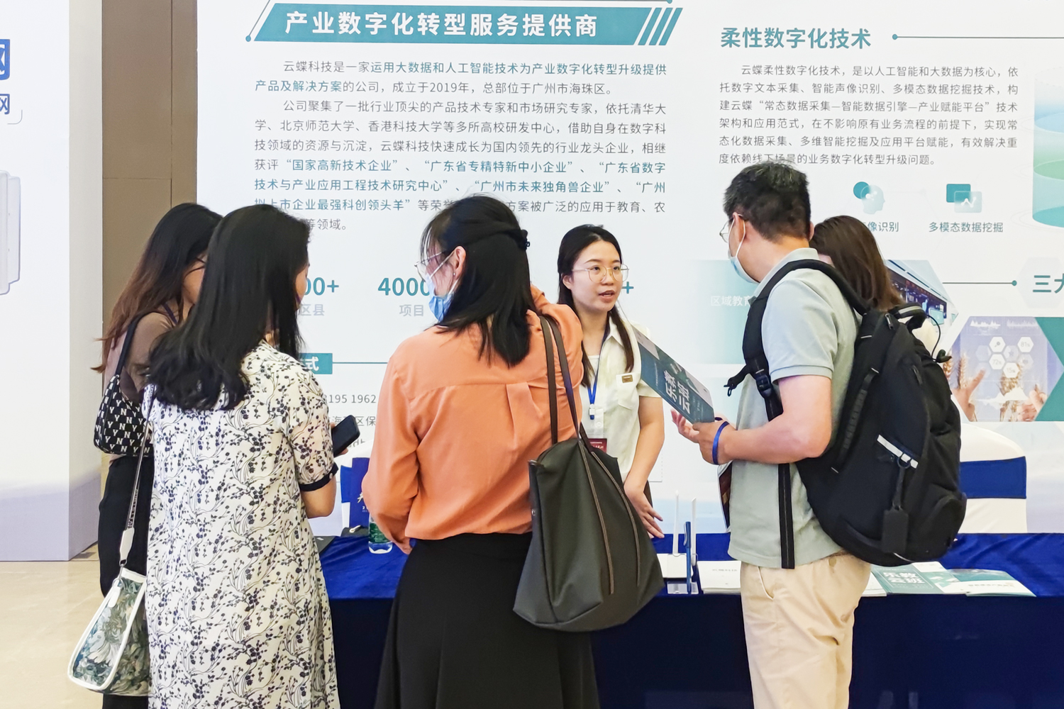 近年來,云蝶科技積極響應(yīng)國(guó)家數(shù)字經(jīng)濟(jì)與實(shí)體經(jīng)濟(jì)深度融合的戰(zhàn)略部署,持續(xù)為產(chǎn)業(yè)數(shù)字化轉(zhuǎn)型升級(jí)提供產(chǎn)品及解決方案,推出以大數(shù)據(jù)和人工智能為核心的柔性數(shù)字化技術(shù),有效解決重度依賴線下場(chǎng)景的業(yè)務(wù)數(shù)字化轉(zhuǎn)型升級(jí)問題,目前業(yè)務(wù)覆蓋教育、農(nóng)業(yè)、建工等領(lǐng)域。在現(xiàn)場(chǎng)設(shè)置的云蝶科技展臺(tái)旁,前來咨詢的嘉賓絡(luò)繹不絕。