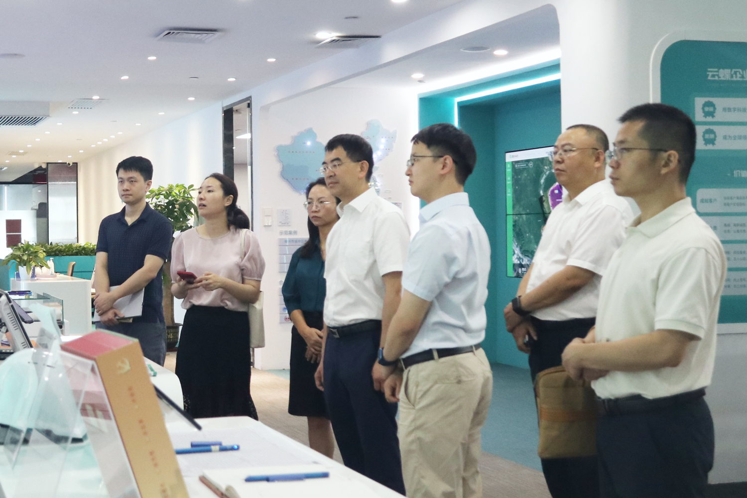 座談開始前,王福軍一行在云蝶科技展廳聽取公司經(jīng)營情況介紹,詳細(xì)了解云蝶以產(chǎn)業(yè)數(shù)字化轉(zhuǎn)型為核心的三大主營業(yè)務(wù)方向,并與企業(yè)就發(fā)展路徑與前景等話題進(jìn)行深入交流。