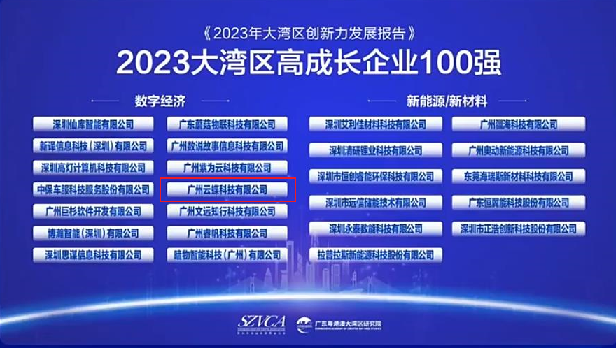 10月27日,由南方財(cái)經(jīng)全媒體集團(tuán)、社會(huì)價(jià)值投資聯(lián)盟(深圳)、21世紀(jì)經(jīng)濟(jì)報(bào)道、廣東粵港澳大灣區(qū)研究院聯(lián)合主辦的“2023大灣區(qū)可持續(xù)發(fā)展系列活動(dòng)周·大灣區(qū)創(chuàng)新經(jīng)濟(jì)論壇”在深圳召開(kāi)。會(huì)上,云蝶科技獲評(píng)2023大灣區(qū)高成長(zhǎng)企業(yè)100強(qiáng),并當(dāng)選粵港澳大灣區(qū)高成長(zhǎng)企業(yè)俱樂(lè)部成員單位。