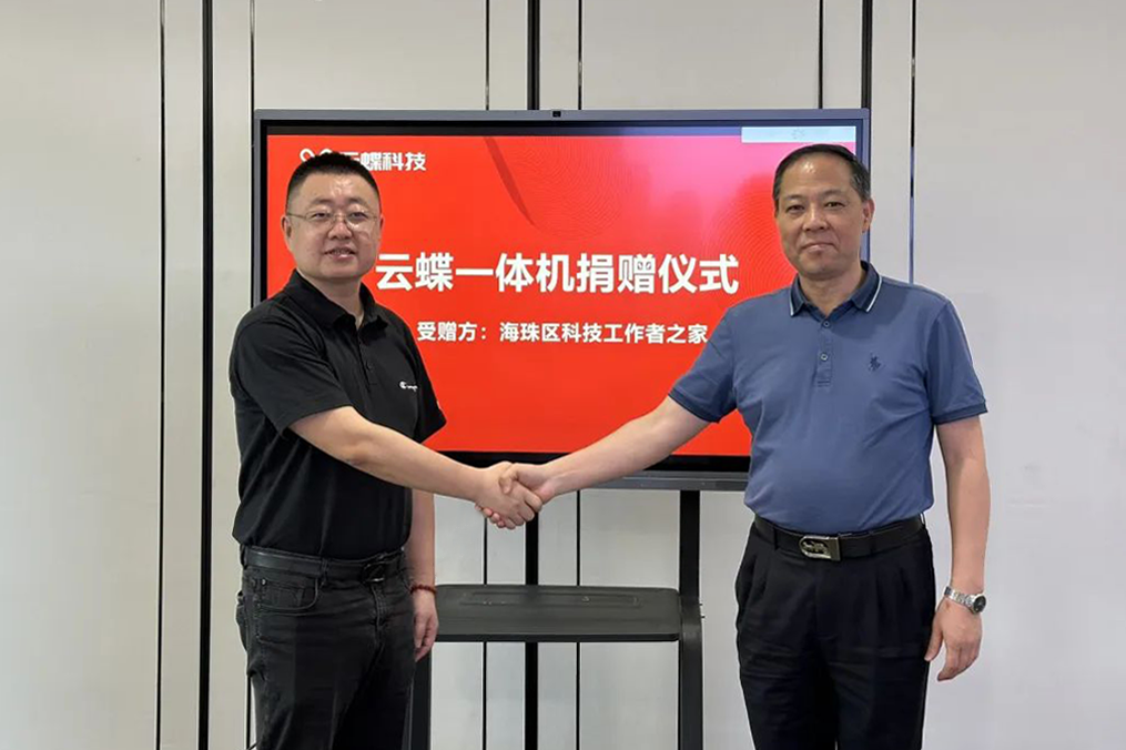 隨后,海珠區(qū)科協(xié)聯(lián)合云蝶科技開展主題黨日活動(dòng)并舉行智能一體機(jī)捐贈(zèng)儀式,云蝶科技向海珠區(qū)科技工作者之家捐贈(zèng)一臺(tái)智能一體機(jī),幫助區(qū)科技工作者之家邁向智能化、數(shù)字化管理。