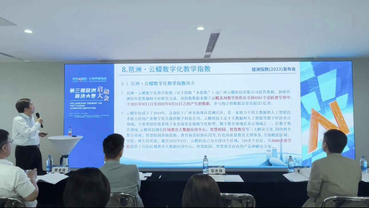 4月23日,由廣州市人民政府、中國人工智能學(xué)會聯(lián)合主辦,中國信息通信研究院、海珠區(qū)人民政府等共同承辦的第三屆琶洲算法大賽啟動大會在廣州琶洲人工智能與數(shù)字經(jīng)濟(jì)體驗(yàn)推廣中心召開。在啟動大會上,云蝶科技參與編寫的《琶洲數(shù)字經(jīng)濟(jì)指數(shù)研究報告(2023)》重磅發(fā)布。