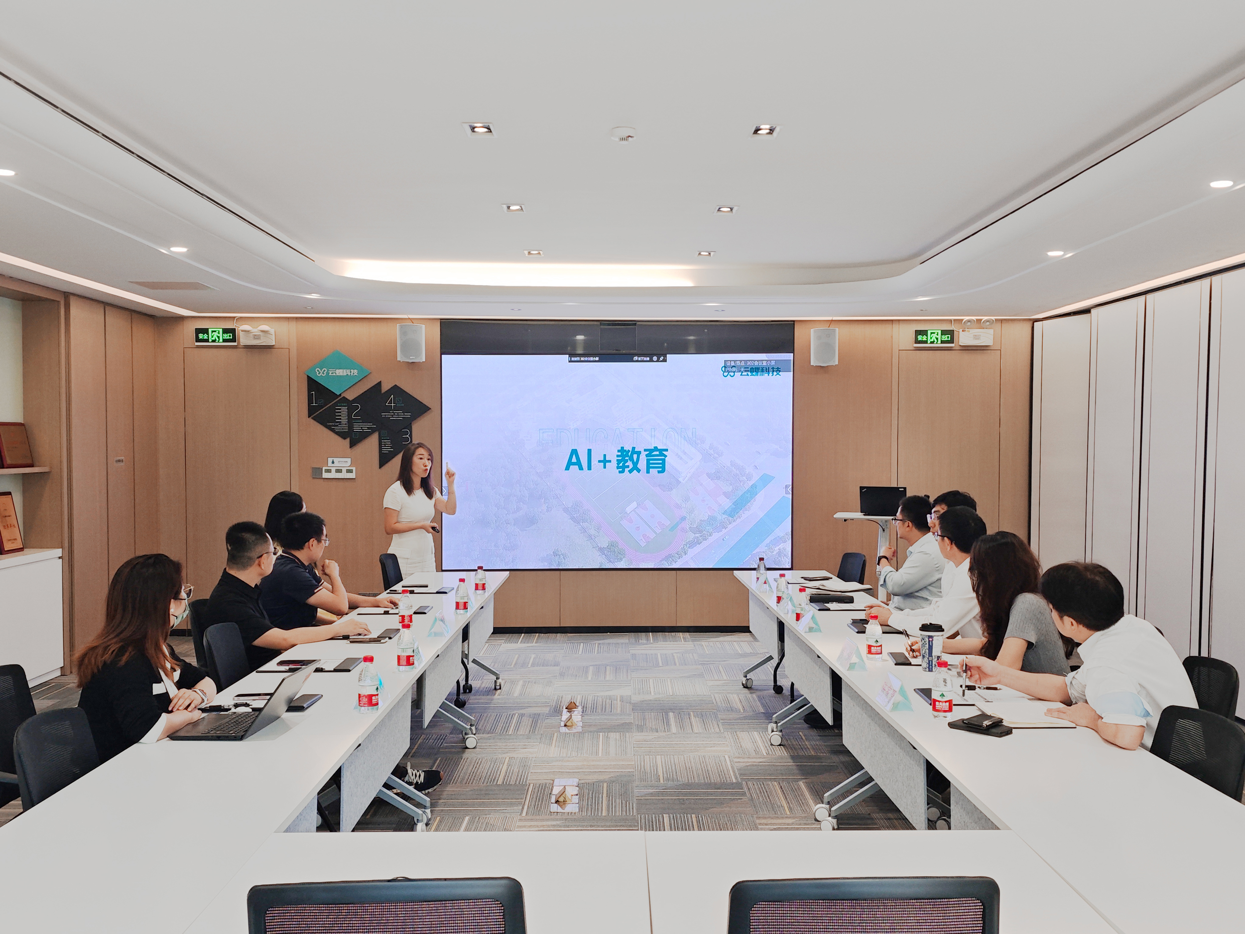 溫總一行首先參觀了云蝶科技企業(yè)展廳,詳細(xì)了解了云蝶最新大模型產(chǎn)品、創(chuàng)新技術(shù)以及行業(yè)應(yīng)用成果,對云蝶的技術(shù)實(shí)力表示贊賞,同時對云蝶區(qū)域教育大數(shù)據(jù)中心、智慧體育、大模型等解決方案產(chǎn)生了濃厚興趣。