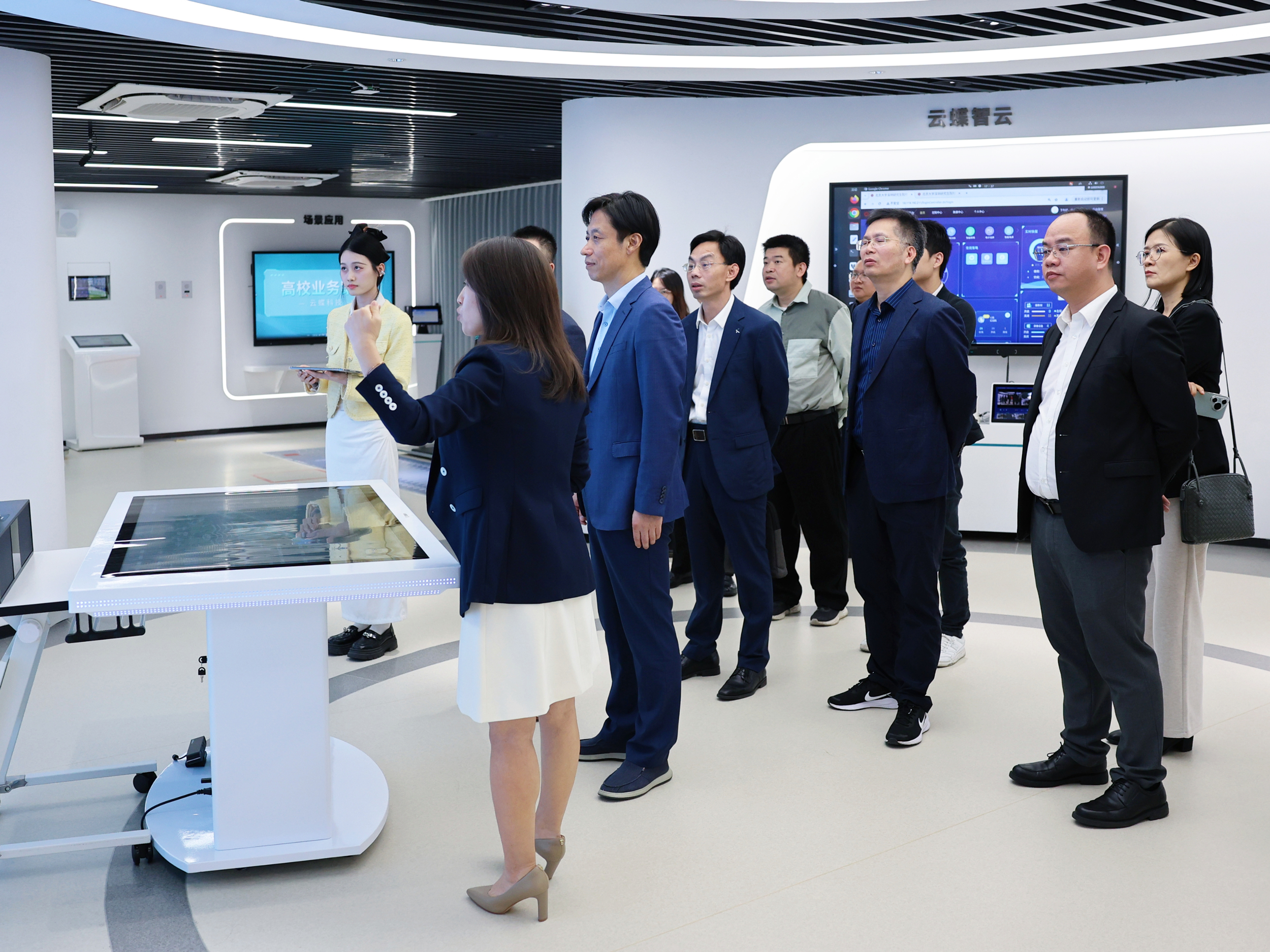 在云蝶科技展廳,楊中民校長一行聽取云蝶科技的發(fā)展歷程、業(yè)務領(lǐng)域顯著成果的匯報,對云蝶科技在人工智能大模型和智慧教育領(lǐng)域所取得的創(chuàng)新成績給予了高度評價。