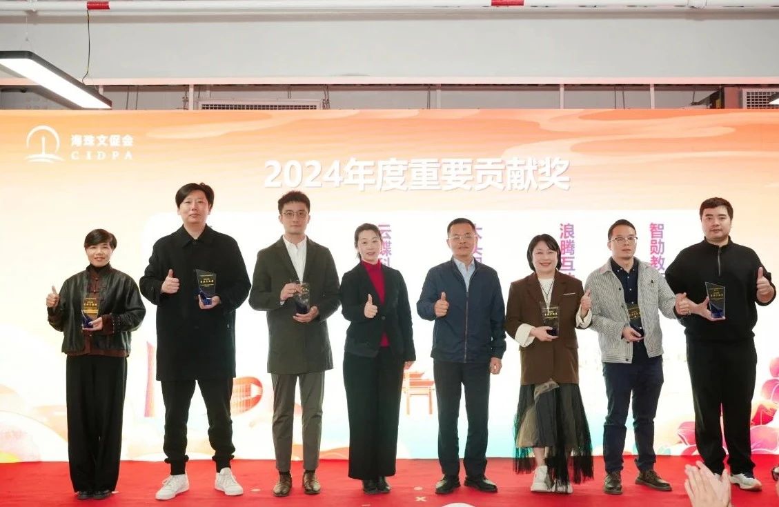 為表彰在2024年度全區(qū)文化產(chǎn)業(yè)發(fā)展進(jìn)程中,以卓越影響力引領(lǐng)行業(yè)走向,為協(xié)會工作開展添磚加瓦、貢獻(xiàn)力量的會員單位,大會還為三七互娛等5家會員企業(yè)頒發(fā)“2024年度杰出貢獻(xiàn)獎”,為云蝶科技等6家會員企業(yè)頒發(fā)了“2024年度重要貢獻(xiàn)獎”,鼓勵更多企業(yè)踴躍投身協(xié)會建設(shè),凝心聚力、攜手同行,共繪海珠區(qū)文化產(chǎn)業(yè)繁榮昌盛的絢麗藍(lán)圖。