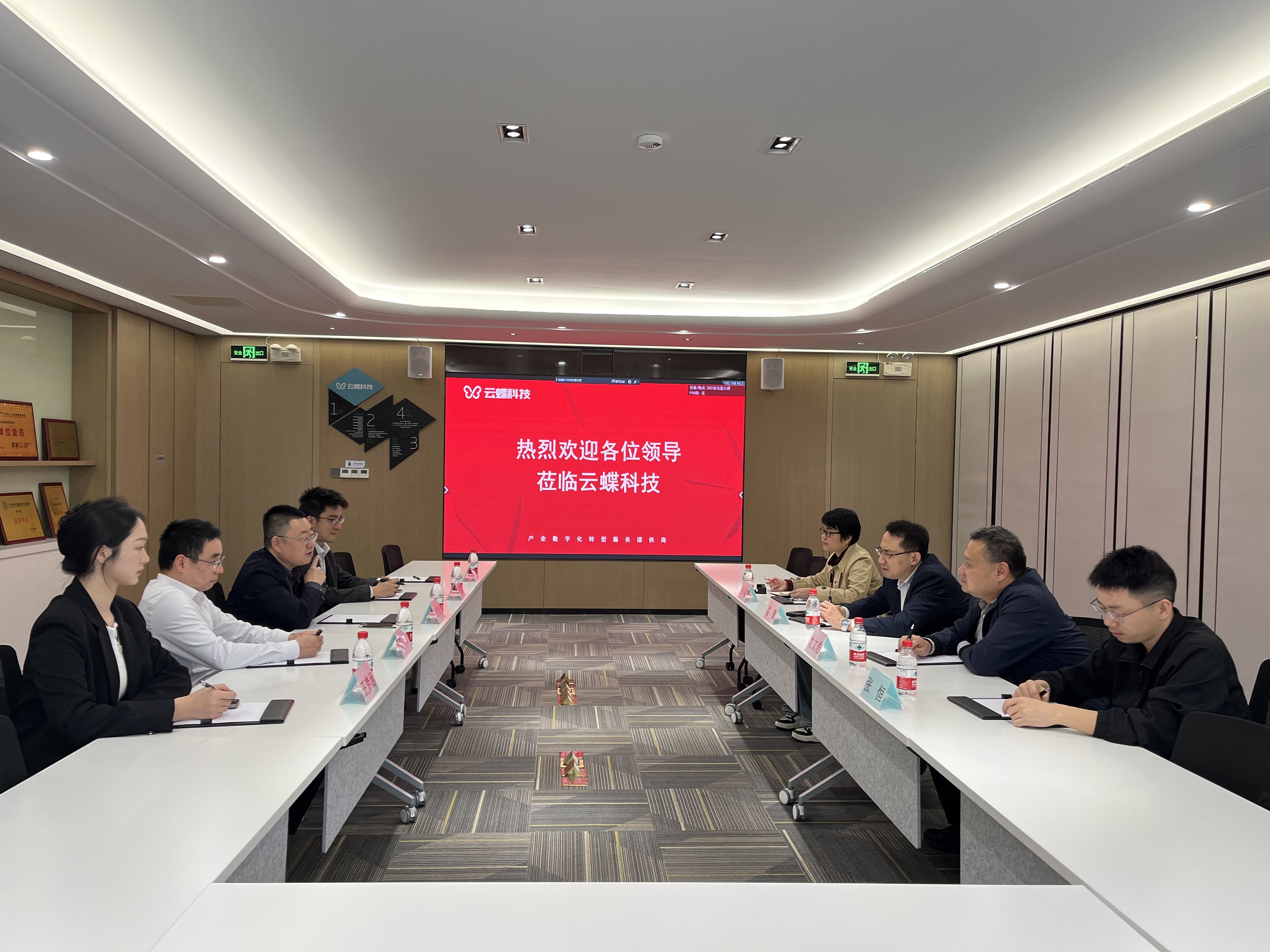 2月20日,廣州市科技和信息化局副局長孟徽、基礎(chǔ)研究處處長沈文浩一行到訪云蝶科技調(diào)研交流,與云蝶科技總裁田雪松博士,副總裁陳天博士、副總裁羅崇鍵進(jìn)行深入交流。