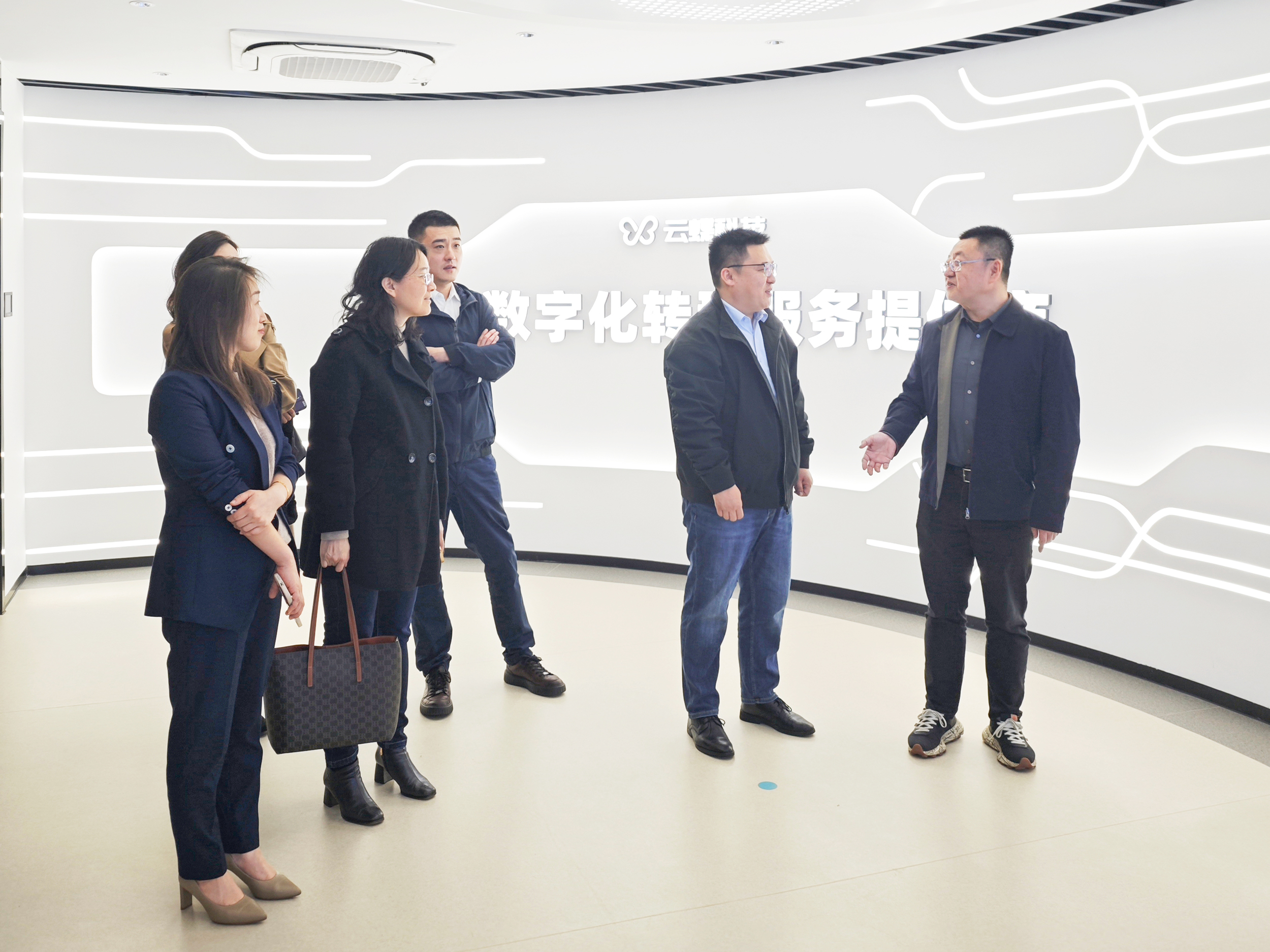 夏雨一行首先參觀了云蝶科技展廳,詳細了解企業(yè)在技術(shù)研發(fā)、業(yè)務(wù)布局以及產(chǎn)業(yè)數(shù)字化轉(zhuǎn)型方面的成果。云蝶科技以AI垂類大模型、智能硬件到全場景應(yīng)用的人工智能技術(shù)與解決方案,展現(xiàn)出強大的技術(shù)實力和市場競爭力,得到嘉賓們的高度評價。