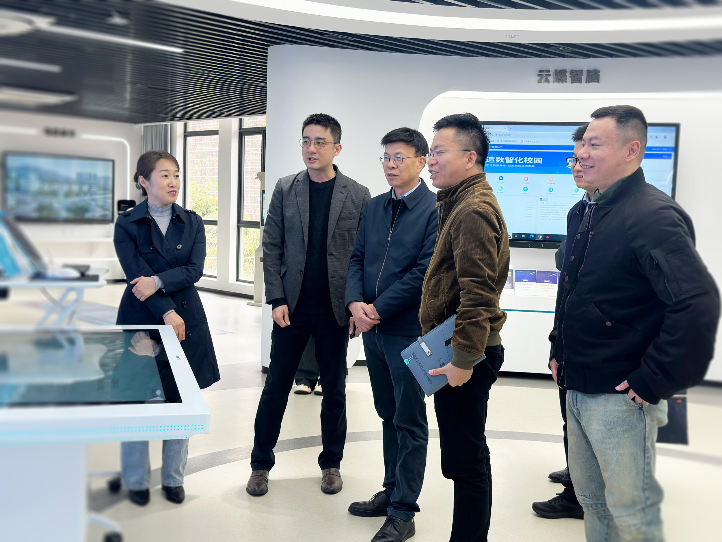 在云蝶負(fù)責(zé)人的陪同下,鄧慶堅一行參觀了企業(yè)展廳,全面了解云蝶科技的發(fā)展歷程及未來規(guī)劃。展廳內(nèi)展示的各類人工智能相關(guān)產(chǎn)品和方案,見證了云蝶科技如何將先進的技術(shù)理念轉(zhuǎn)化為實際生產(chǎn)力,推動人工智能產(chǎn)品走向市場,賦能千行百業(yè)。