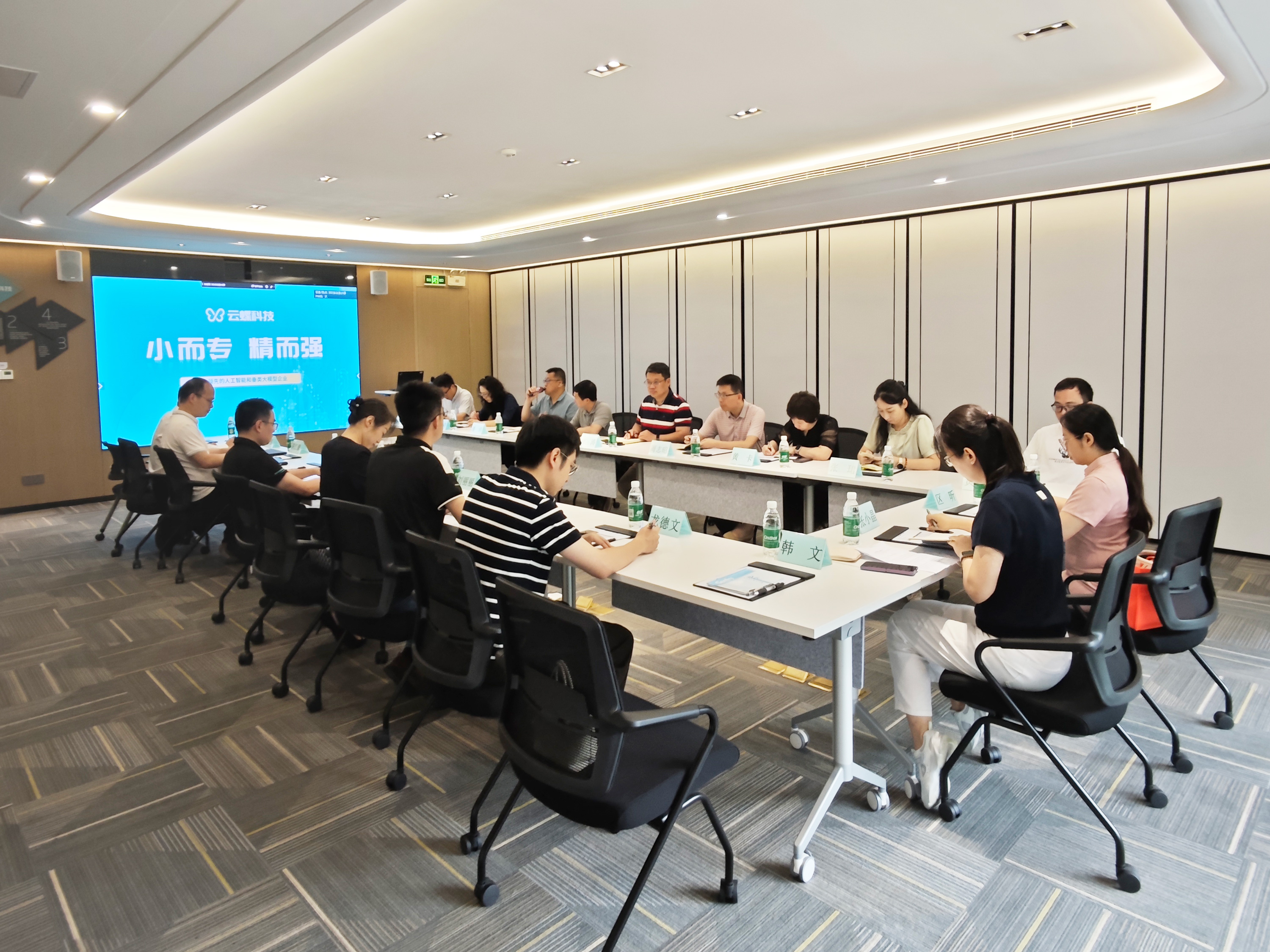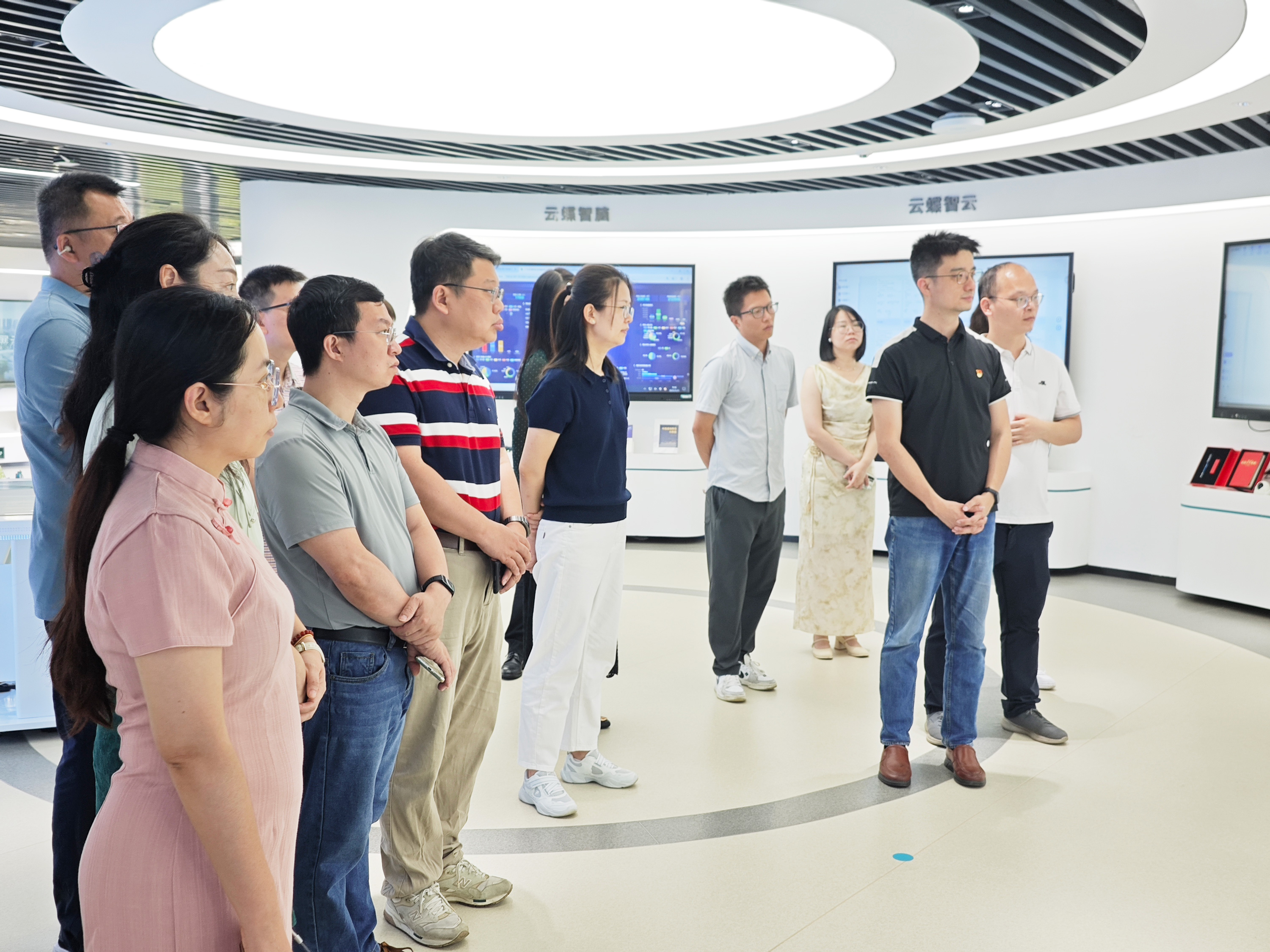 在公司展廳,云蝶科技副總裁羅崇鍵向海珠區(qū)衛(wèi)生健康局一行介紹了公司在人工智能與大模型領(lǐng)域的發(fā)展歷程、技術(shù)優(yōu)勢(shì)以及為教育、醫(yī)療、政務(wù)等多個(gè)領(lǐng)域量身打造的智能化解決方案。來(lái)賓們?cè)诼?tīng)取介紹與體驗(yàn)產(chǎn)品后,對(duì)云蝶科技以人工智能賦能產(chǎn)業(yè)創(chuàng)新給予高度評(píng)價(jià)。