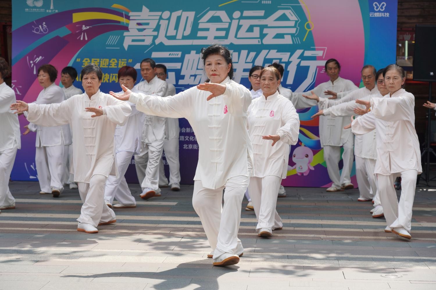 “太極拳早已突破年齡圈層,成為全民健身的‘流量擔(dān)當(dāng)’?!北本┙痔珮O拳輔導(dǎo)站站長(zhǎng)黃碧儀在表演后表示。這位新晉的“廣州市優(yōu)秀社會(huì)體育指導(dǎo)員”,自2015年11月輔導(dǎo)站成立至今,10年來(lái)累計(jì)培訓(xùn)學(xué)員超萬(wàn)人次?!叭\(yùn)會(huì)是全民的賽場(chǎng),我們以快閃展演打破傳統(tǒng)邊界,讓更多人感受這項(xiàng)非遺運(yùn)動(dòng)的當(dāng)代魅力?!秉S碧儀表示。