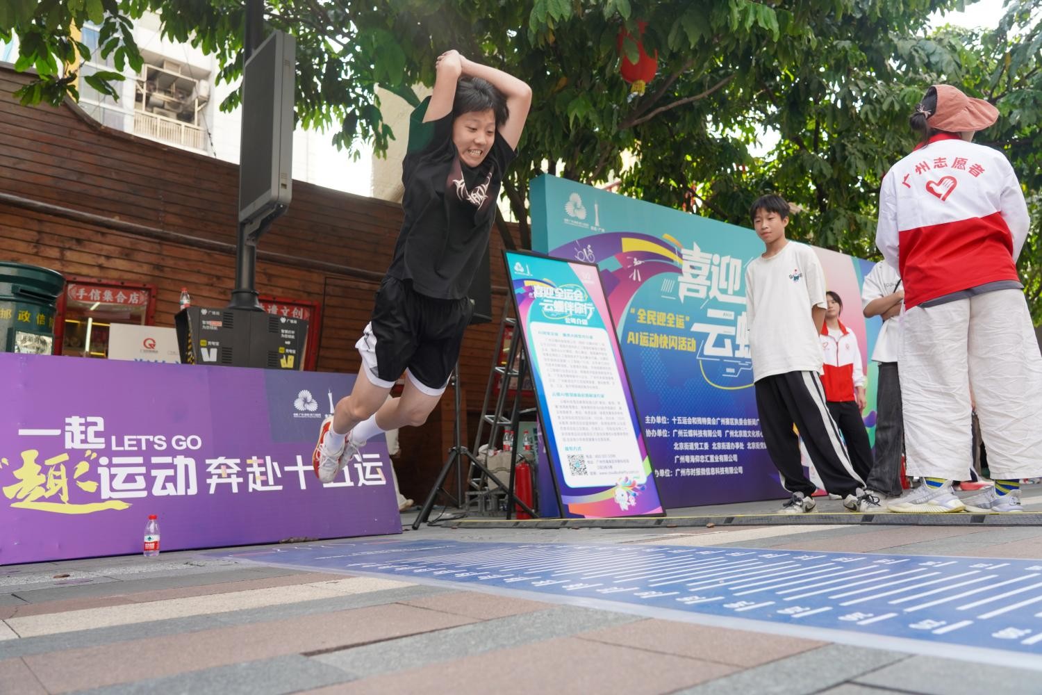 “您的跳躍距離達(dá)2.35米,超越全國(guó)87%用戶!”在北京路天河城A區(qū)南廣場(chǎng),兩臺(tái)搭載視覺(jué)識(shí)別、人臉識(shí)別與大數(shù)據(jù)等前沿科技的“云蝶智慧體育一體柱”吸引市民紛紛駐足體驗(yàn)。無(wú)需穿戴設(shè)備,市民便能參與立定跳遠(yuǎn)、30秒跳繩等挑戰(zhàn)。系統(tǒng)通過(guò)AI算法實(shí)時(shí)捕捉人體26個(gè)骨骼關(guān)鍵點(diǎn),生成運(yùn)動(dòng)報(bào)告,完成挑戰(zhàn)者還可獲得運(yùn)動(dòng)主題紀(jì)念品?;顒?dòng)現(xiàn)場(chǎng)既有銀發(fā)長(zhǎng)者嘗試AI跳繩,也有青少年組團(tuán)沖擊跳遠(yuǎn)排行榜。其中,一位青少年以30秒120下的驚人成績(jī)引爆全場(chǎng)。