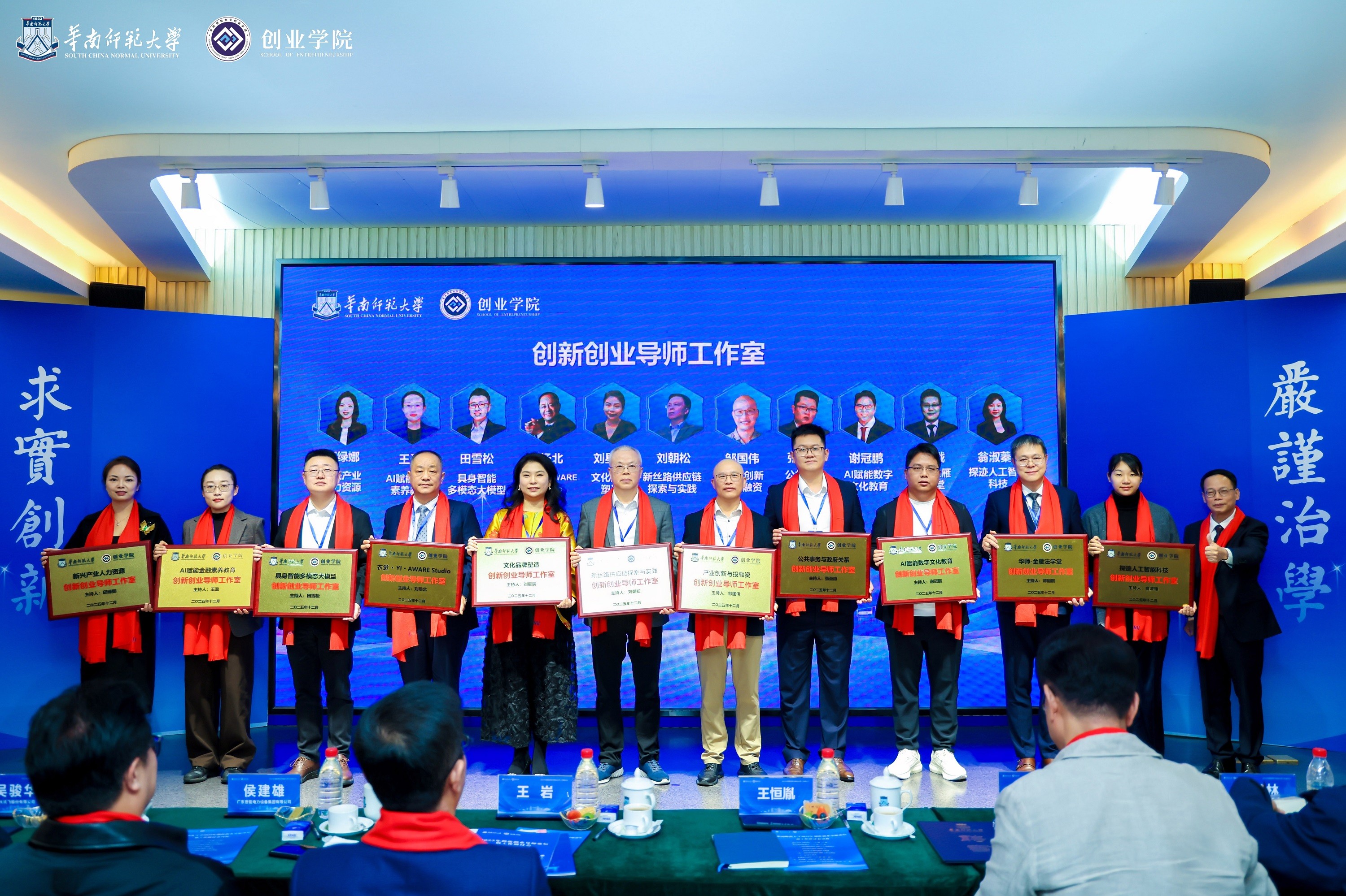 華南師范大學(xué)黨委書記王恒胤為田雪松博士頒發(fā)工作室牌匾