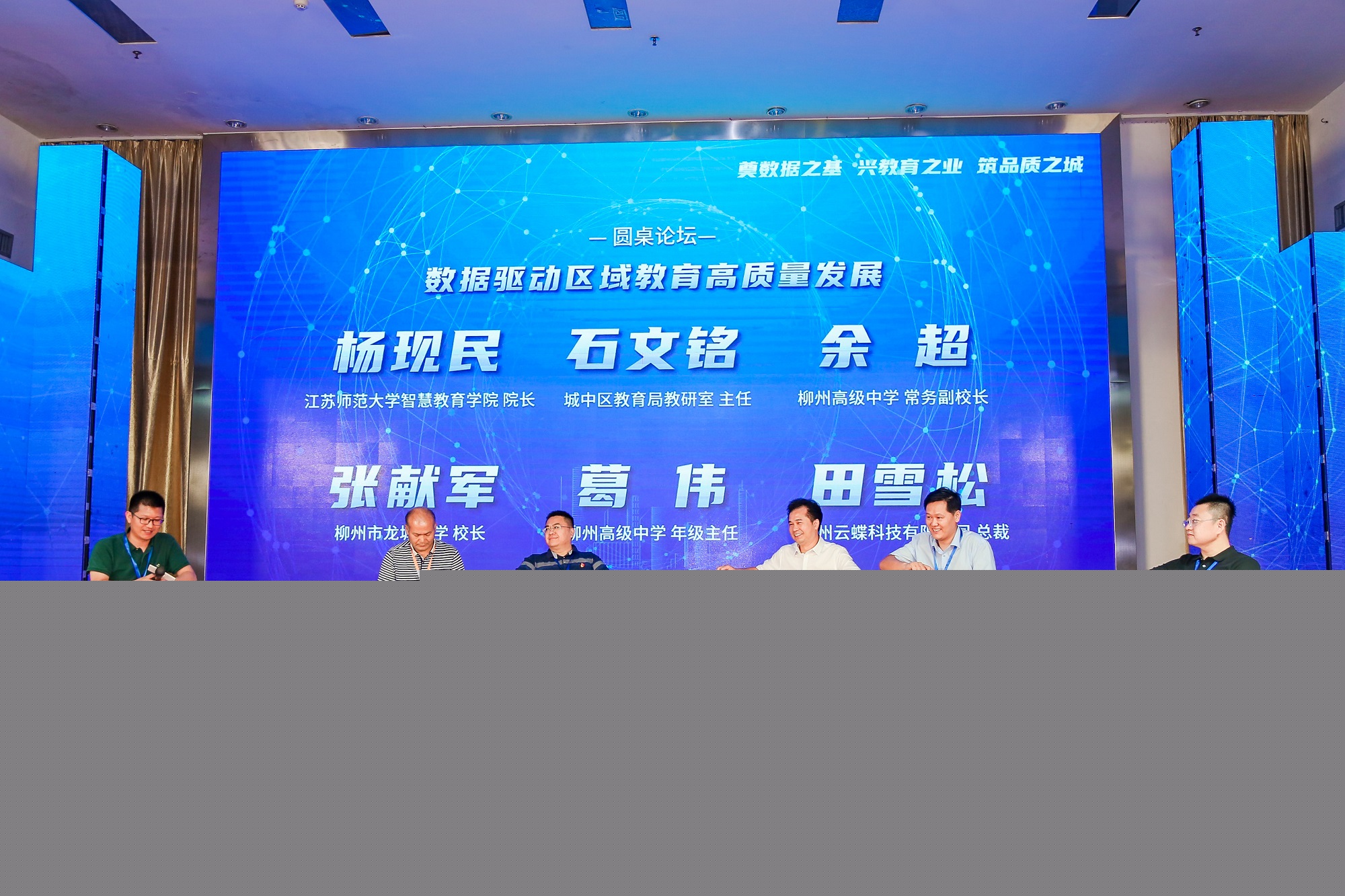 圓桌論壇環(huán)節(jié)由江蘇師范大學(xué)楊現(xiàn)民教授主持,邀請城中區(qū)教育局教研室石文銘主任、柳州高級中學(xué)余超副校長、城中區(qū)龍城中學(xué)張獻(xiàn)軍校長、柳州高級中學(xué)葛偉博士、廣州云蝶科技有限公司田雪松總裁,共同圍繞“數(shù)據(jù)驅(qū)動區(qū)域教育高質(zhì)量發(fā)展”這一主題進(jìn)行探討。
