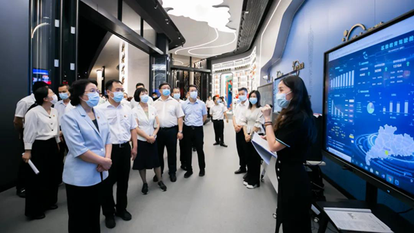 廣州市委常委、宣傳部長徐詠虹(左一)率隊參觀云蝶展區(qū)
