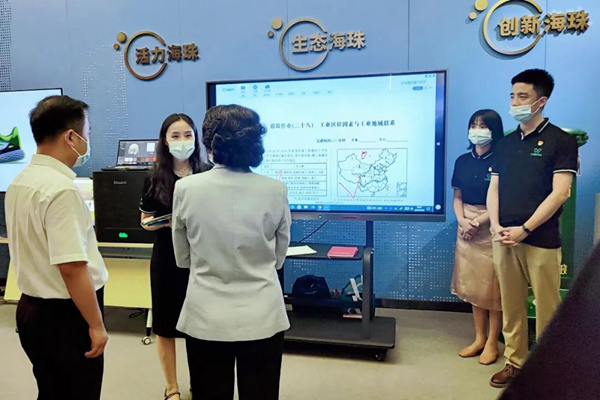 在活動中,廣州市委常委、宣傳部長徐詠虹和海珠區(qū)委書記蔡澍、區(qū)長劉晨輝等市、區(qū)領導一行來到了云蝶科技展示區(qū),聽取了云蝶公司發(fā)展歷程、產品體系和本地推廣等工作情況的匯報,并現場體驗了云蝶紙筆互動課堂。現場講師邀請領導們拿起云蝶點陣筆在紙上書寫“不忘初心--熱烈慶祝中國共產黨成立100周年”,書寫的筆跡同步呈現在云蝶觸控一體機屏幕上,現場立即響起了熱烈的掌聲。