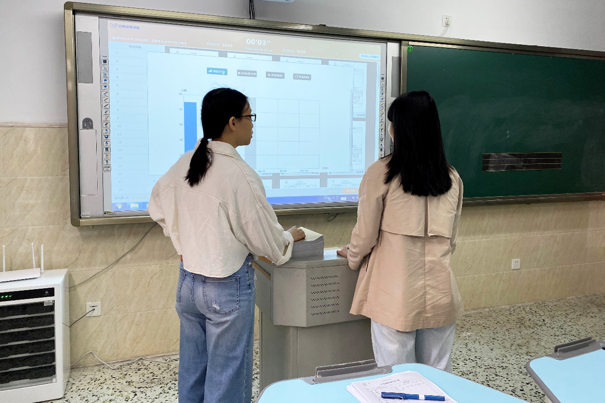對于即將舉行公開課的老師,講師還與她進行1對1培訓,以“課前備課、課中授課、課后作業(yè)”為主線,指導她根據(jù)課堂需要完成課件制作、互動設(shè)計、數(shù)據(jù)分析等內(nèi)容。“紙筆的形式可以運用在很多學生書寫的環(huán)節(jié),還有自動批閱、即時統(tǒng)計、筆跡還原等功能對于學生的個性化教學很有幫助。”張老師在進行公開課試講后說道。