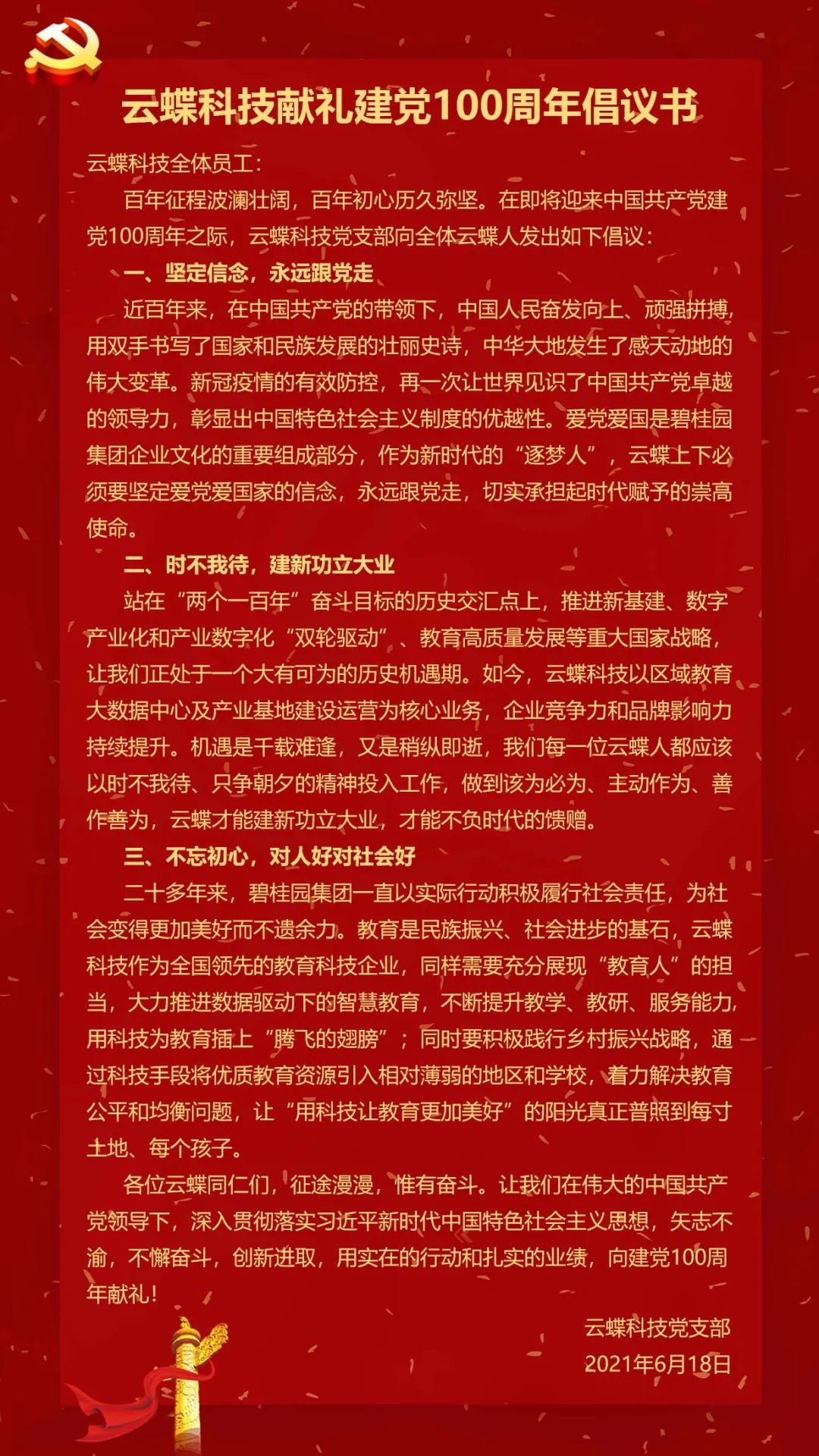 云蝶科技獻(xiàn)禮建黨100周年倡議書