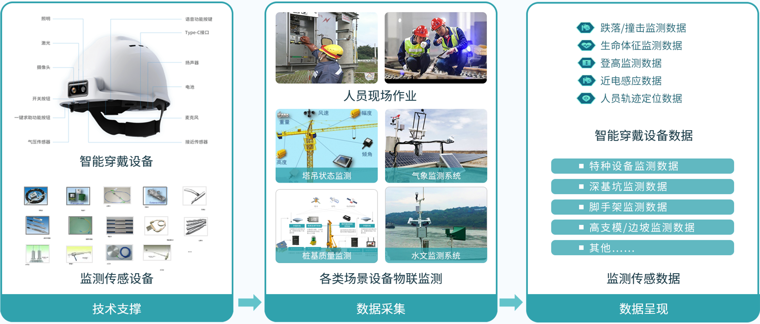 涵蓋智能穿戴設(shè)備與監(jiān)測傳感設(shè)備等,實時監(jiān)測人員作業(yè)與設(shè)備作業(yè)等場景,采集各類涉及工程質(zhì)量、安全管理等方面的數(shù)據(jù),對于項目的穩(wěn)定運行發(fā)揮積極作用